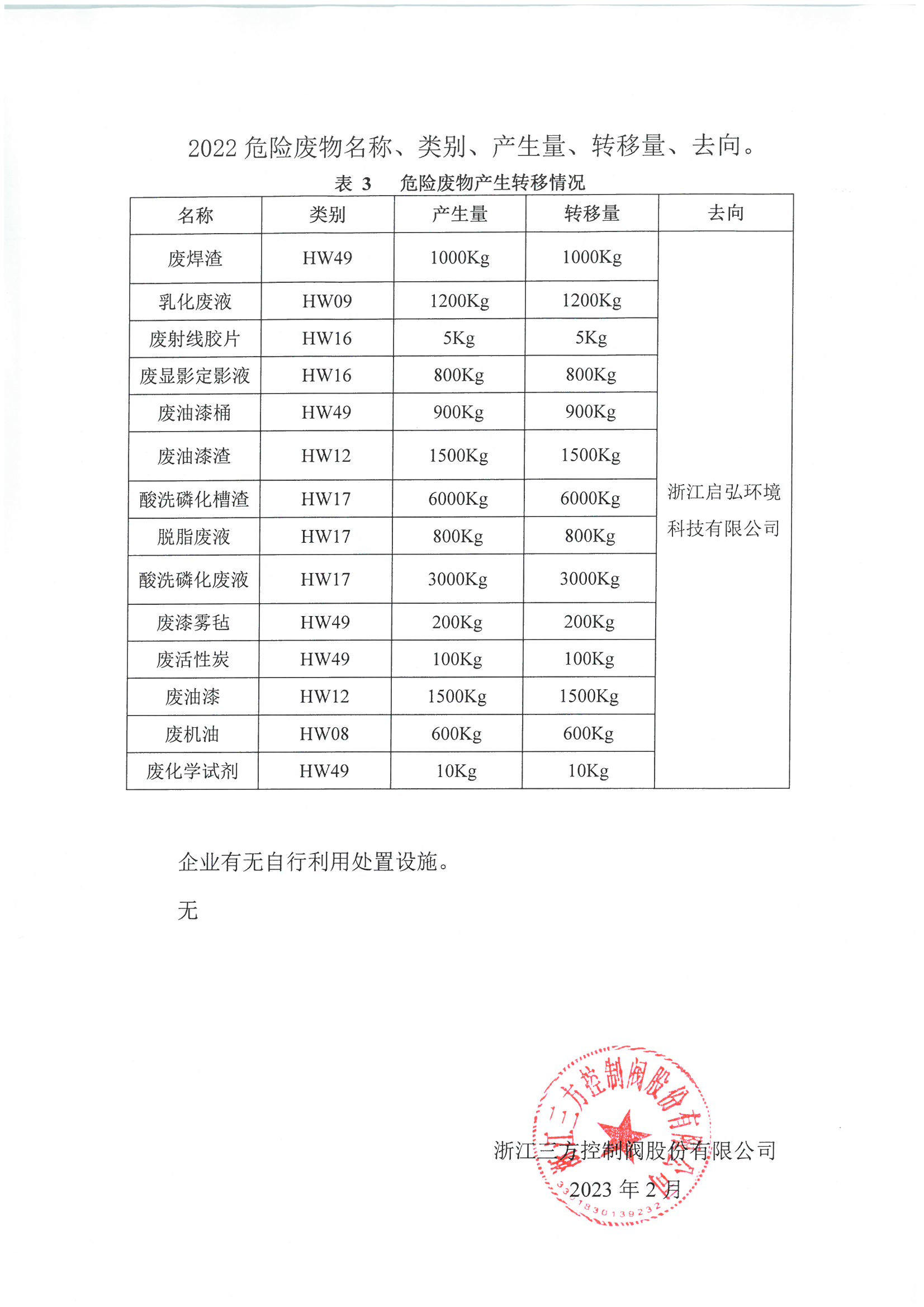 浙江狗万官网控制阀股份公司 固体废物污染环境防治信息公告